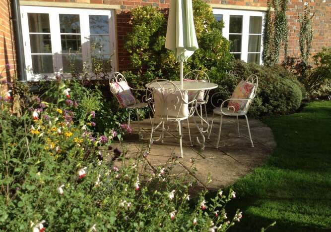 In summer you can sit in the guest area of our extensive garden and enjoy the peace and beauty of an English country garden.